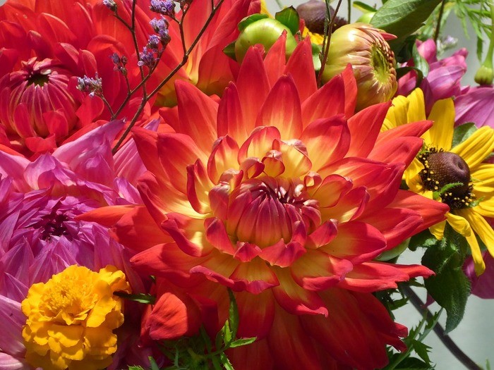 ダリアは、アレンジメントや花束で人気の花の1つです。種類が多く、鮮やかな明るいカラーやシックでダークなカラー、咲き方もその選択肢の多さが魅力の一つです。ガーデニングでもとても人気のある花です。