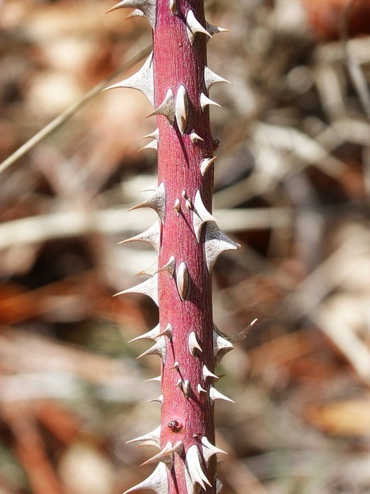 このイバラ(とげ)にも3種類があります。 ・茎針:茎や枝が進化し変形したもの。 ・葉針:葉が進化して変形したもの。 ・刺状突起体:粗いトゲの事を指します、バラのトゲもこの種類に属します。 植物が動物から身を守るために進化したこの形状を、人間も古くから利用してきました。例えば敵から守るためや、動物から食物を守るためなどです。