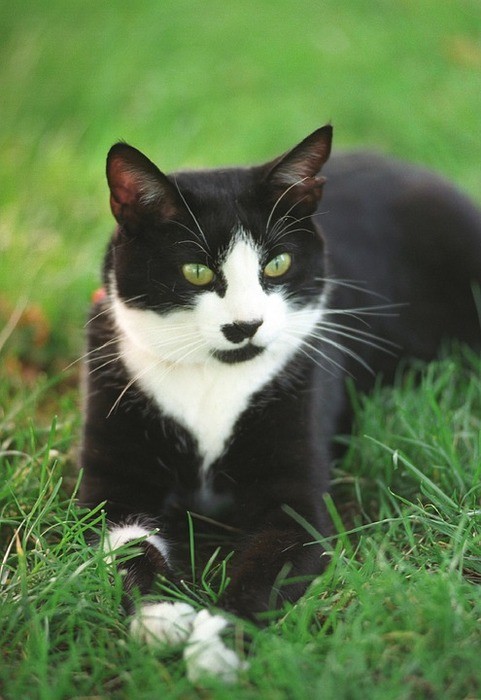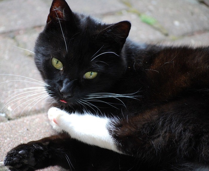 最も多く見かける靴下猫は、黒い毛色に白い靴下を履いた猫です。元の色が黒いため白い靴下の部分が際立って見えます。黒い毛色のブチ猫は靴下猫になる確率が高くなります。