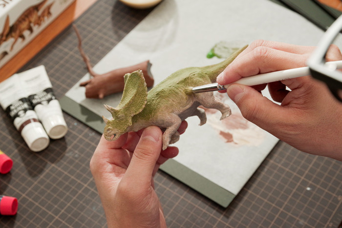 フィギュアは物にもよりますが、他のプラモデルと比べて細かいディティールが多いので、塗るのにもコツがいります。 人物のフィギュアなら肌色からといったように、基本的には薄い色から塗っていくのがコツです。薄い色から濃い色へ塗っていくことで、多少色がはみ出してしまっても、後から塗る色のほうが濃いのでリカバーできます。 フィギュアは何度も塗り重ねると、細かいディティールが塗料の厚みで埋まってしまいます。2度塗り程度で仕上げられるように、あまりと量を薄めすぎなのがコツです。