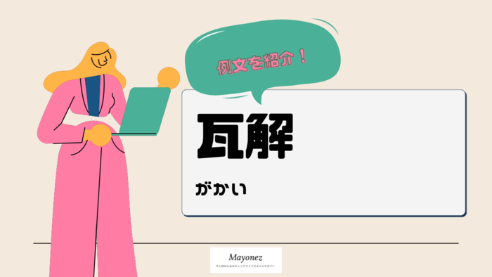 この言葉は、「がかい」と読みます。「瓦」は「かわら」を意味しますが、その音読みで「が」となり、「解」は「バラバラになる」ことを意味しますが、その音読みが「かい」であり、これらを合わせて「がかい」と読むことができます。