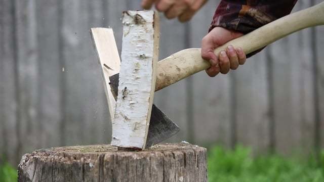 人が大勢集まるキャンプ場での斧を使った薪作りは、周囲の状況確認をよく確認するなどの十分な対策が不可欠です。 一般的なキャンプ場で使う斧は、できるだけコンパクトな手斧が最適です。焚き火に使う焚き付け用の薪を細かく切り裂くためには、丸太を断ち切る柄の長い斧(アックス)より柄が短めのハチェット(手斧)の方が便利です。
