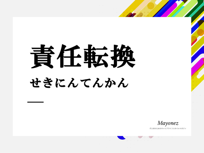 相手に責任をなすりつける行為のことを「責任転換」と表現する人がいますが、「責任転換」という言葉は本来存在しません。 「転換」には「方向を換える」という意味がありますので、「責任の方向を換える」、つまり「責任を相手へ向ける」という勘違いから「責任転換」を使用していることが考えられます。