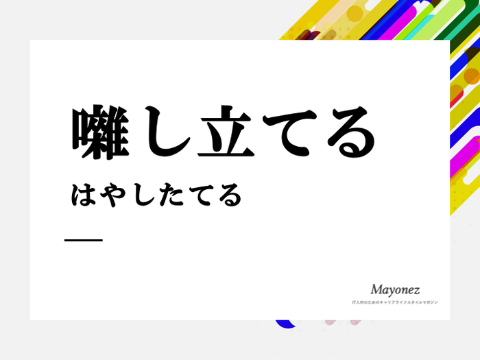 「囃し立てる(はやしたてる)」とは、声をそろえてからかったり、褒め讃えることを際立たせて行うこと、つまり「盛んに褒めたり冷やかしたりする」意味で使われます。