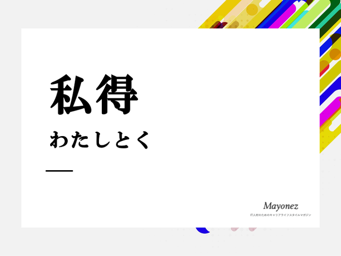 「私得」は「わたしとく」と読みます。「しとく」や「わたしどく」と読んでしまいがちですが、文章の中で「私得」が出てきた場合は「わたしとく」と読みましょう。 人と対面して会話するなかで、私得という言葉が出てくる機会はあまりないかもしれませんが、正しい読み方は覚えておくとよいでしょう。