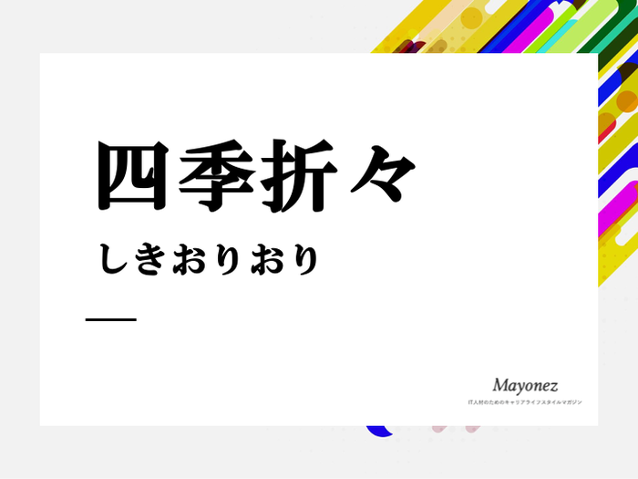 「四季折々」の読み方は「しきおりおり」で、その意味は「春夏秋冬のその時その時」です。春なら春、夏なら夏、とその季節ひとつひとつを指しています。