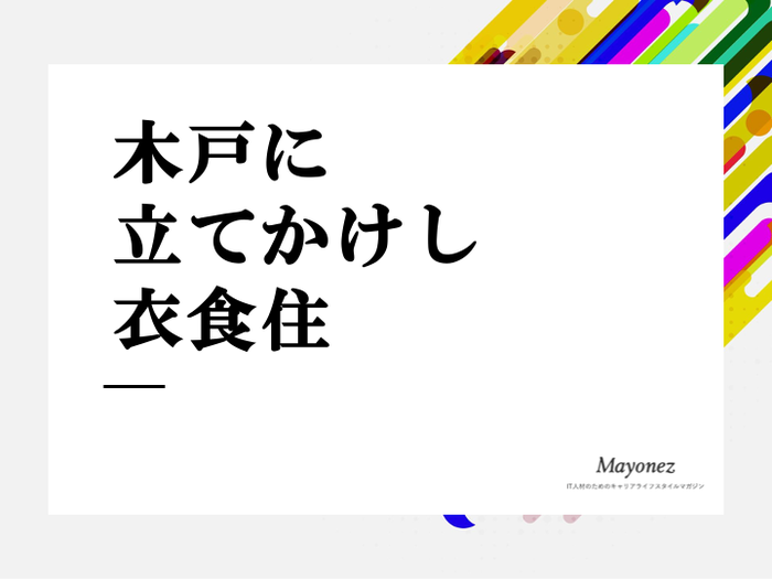 ここからは「木戸に立てかけし衣食住」についてひとつひとつ紹介していきます。種類や意味について解説し、どのように会話に取り入れるか具体例もあわせて見ていきましょう。