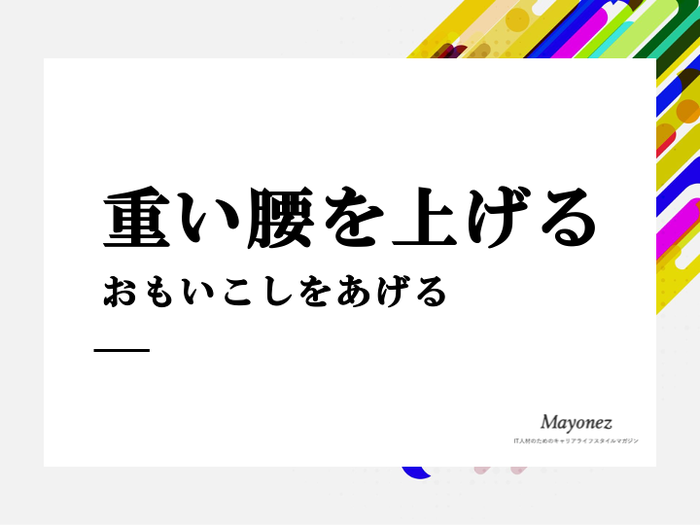 「重い腰を上げる」という慣用句の正しい意味や使い方を知っていますか。この記事では、「重い腰を上げる」について意味や使い方、類語や英語表現を紹介しています。ビジネスに限らず日常生活でも使われる言葉なので、ぜひチェックして正しい使い方を理解しておきましょう。