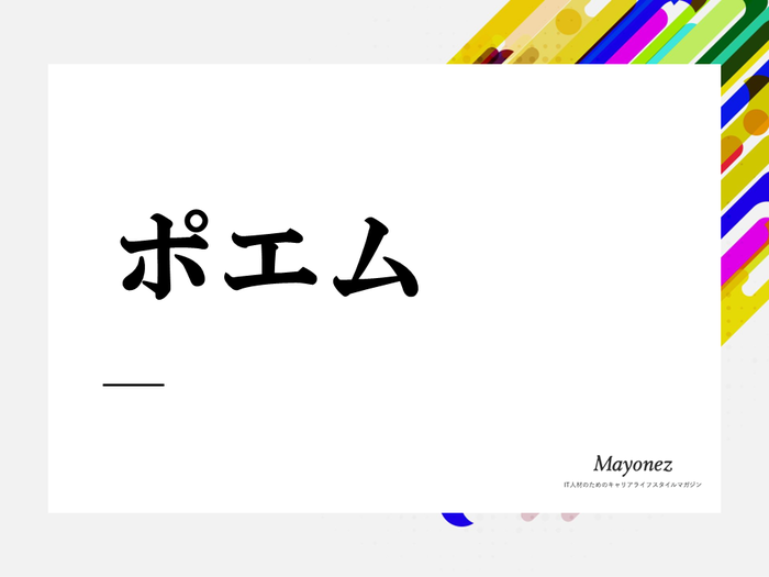 「ポエム」とは詩的な文章のことです。ネット上では、詩のような言葉遣いの文章をポエムと言う場合もあります。 ネガティブな意味では、「詩的ではあるが中身のない文章や発言」を揶揄して使われることもありますが、SNSやブログに上げられるポエムのような文章は、自分に酔っていると思われることが多いためでしょう。 このように、ポエムは読み手に「恥ずかしい」といった感情を抱かせることもあります。自虐や皮肉を込めて、自分自身を面白く扱うような文章を書く場合には注意が必要です。 なお、ネット上で用いられるポエムのような言葉遣いの文章は、日本語における現代詩に属しますが、文の長さや行数も自由で、定型はありません。