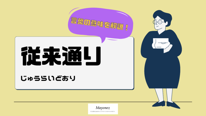 「従来通り」という言葉の読み方や意味、適切な使い方が分からず困ったことはありませんか。本記事では、「従来通り」の読み方や意味はもちろん、例文を用いて使い方をご紹介いたします。「従来通り」の意味や使い方について疑問や不安があれば、是非チェックしてみてください。