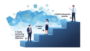 AI監視の重要性を理解した上で、次に具体的な導入プロセスを3つのステップで解説します。
