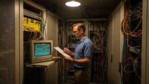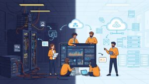 AI監視の必要性を理解するために、まずはコンピュータシステムの歴史を遡ります。クラウド普及以前、企業が自社内に物理サーバーを設置・運用する「オンプレミス」が主流でした。この時代のシステム監視は、現代とは全く異なる課題を抱えていました。