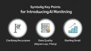 AIの学習には質の高いデータが不可欠です。質の高いログやメトリクスがなければ、AIも正確な分析はできません。まずは自社のデータ収集基盤を見直し、整備することが第一歩となります。