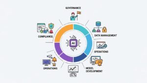 将来のAI監査では、技術的な側面だけでなく、組織的な体制やプロセス全体が評価対象となります。監査人がどのような観点でチェックを行うかを理解し、効果的な対策を講じることが重要です。AI監査では、主に以下の5つの領域が重点的に問われます。