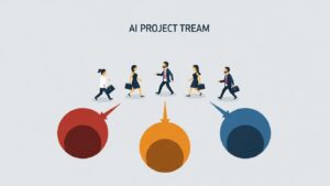 次に、戦略を実行するための組織体制を構築します。AIプロジェクトは部署横断での推進が不可欠です。事業部門、データサイエンティスト、IT部門のメンバーからなる混成チームを組成します。
