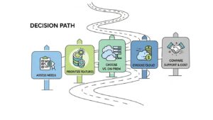 ツールには、サービス提供者のサーバーを利用する「クラウド型」と、自社サーバーを構築する「オンプレミス型」があります。現在では、初期コストを抑えられ、導入も迅速なクラウド型が主流です。特別な要件がなければ、多くの場合クラウド型が有力な選択肢となるでしょう。