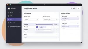 次に、MDM/UEM上で「構成プロファイル」を設計します。これはデバイスに適用する設定のテンプレートで、Wi-Fi設定、パスワードポリシー、必須アプリの配布リストなどを定義します。この設計が従業員の利用体験を左右する重要な工程です。
