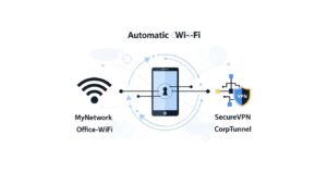 オフィスや店舗のWi-Fi設定は、最も代表的な活用シーンです。SSID、パスワード、プロキシ設定、そして証明書を利用したEAP-TLSなどの高度な認証情報までプロファイルに含めて配布できます。従業員はパスワードを入力することなく、自動的にセキュアな社内Wi-Fiに接続可能です。