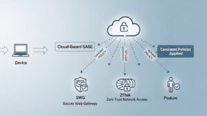 SASE(Secure Access Service Edge)やSSE(Security Service Edge)は、ネットワークとセキュリティ機能をクラウドで統合提供するソリューションです。ZscalerやPalo Alto Networksなどの主要プラットフォームは、標準でPosture Check機能を備えています。デバイスに専用エージェントを導入し、場所を問わず一貫したポリシーを適用できるのが最大の利点です。