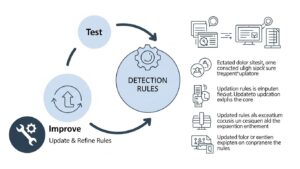 このシミュレーションにより、既存の検知ルールが想定通りにアラートを発するか、またSOCアナリストがアラートを正しく認識し、インシデント対応プロセスを開始できるかをテストします。結果として、アラートが発せられなかったり、ノイズに埋もれて見逃されたりした場合は、そのルールのチューニングやロジックの見直しといった改善が必要です。この「テスト→評価→改善」のサイクルを継続的に回すことで、検知能力の質を向上させ、カバレッジ評価の信頼性を高めることができます。