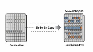 ディスクイメージとは、HDDやSSDといったストレージの全領域を、セクタ単位でビットレベルで完全に複製したものです。単なるファイルコピーとは異なり、「ディスクのクローン」に近いですが、より網羅的なデータを保全します。
