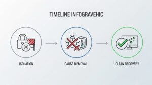 インシデント対応は、脅威を封じ込めて完了ではありません。封じ込めは応急処置であり、次には根本原因を取り除く「根絶(Eradication)」と、システムを正常な状態に戻す「復旧(Recovery)」が続きます。このプロセスの中核をなすのが「Remediation(修復)」です。