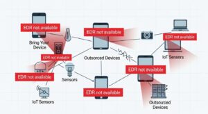 冒頭で触れたBYOD端末、スマート工場で稼働するOT/IoT機器、あるいは管理が及ばない業務委託先のシステムなど、EDRエージェントを導入できない「アンマネージド端末」は増加の一途をたどっています。