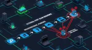 攻撃の第一歩は、標的のネットワーク環境を把握する偵察活動です。NDRは、ネットワークの出入り口での不審な振る舞いを監視し、この初期段階の攻撃を捉えることができます。