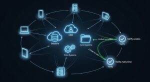 ゼロトラストセキュリティは、その名の通り「決して信頼せず、常に検証する(Never Trust, Always Verify)」という原則に基づいています。これは、社内ネットワークの内外を問わず、すべてのアクセスリクエストを信頼できないものとみなし、その都度、厳格な検証を行うアプローチです。