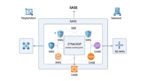 SASE(サシー)は、ネットワーク機能(SD-WANなど)とネットワークセキュリティ機能(ZTNA/SDP, SWG, CASBなど)をクラウド上で統合し、単一のサービスとして提供するフレームワークです。このSASEにおいて、ZTNA/SDPは中核となるアクセス制御の機能を担っています。つまり、SDPは包括的なクラウドセキュリティであるSASEを構成する重要な要素技術なのです。