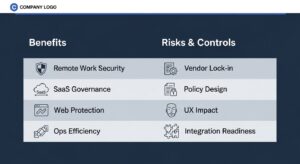 同時に、「VPN帯域が逼迫している」「特定のクラウド利用を安全にしたい」など、現場の課題を洗い出し、優先順位をつけます。このプロセスを通じて、SSEのどの機能(SWG, CASB, ZTNA)から導入すべきか、具体的なターゲットが見えてきます。