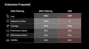 一方、DNSフィルタリングはDNSレイヤーでの脅威ブロックに特化しています。