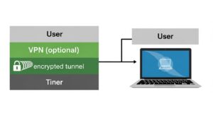 VPN(Virtual Private Network)は、通信を暗号化することで、安全な通信経路を確保する技術です。主にリモートワークで社内ネットワークに安全にアクセスするために利用されます。