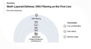 クラウドベースのDNSフィルタリングは、まさにこの要件を満たすソリューションであり、ゼロトラストやSASEへの移行を目指す組織にとって、現実的かつ効果的な第一歩となり得ます。