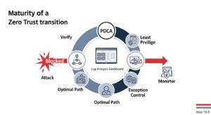 ゼロトラスト運用は、継続的な改善サイクルを回すことが成功の鍵です。アクセスログやアラートを常にモニタリングし、不審な挙動やポリシー違反を監視する体制を整えましょう。