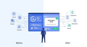 ゼロトラストとは、「何も信頼せず、すべてを検証する(Never Trust, Always Verify)」という考え方に基づくセキュリティモデルです。すべてのアクセス要求を、その都度ユーザーのIDやデバイスの状態などに基づいて厳格に検証し、最小限の権限を与えます。このアプローチにより、複雑なネットワークルールが不要になり、ポリシーを「誰が、どのデバイスで、何にアクセスするか」というシンプルな単位で管理できるようになり、結果としてポリシーの簡素化につながるのです。