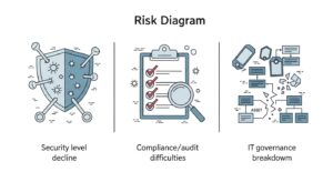こうした例外運用は、それ自体が即座に悪影響を及ぼすわけではありません。しかし、適切な管理プロセスなしに横行すると、組織全体に深刻なリスクをもたらします。