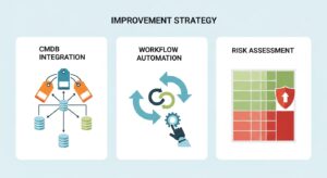 例外申請は、多くの場合、特定のIT資産(PC、サーバー、ソフトウェアなど)に関連付けられます。例外運用管理台帳と、IT資産インベントリやCMDBを連携させることで、管理は飛躍的に効率化します。例えば、特定のサーバーにどのような例外設定が許可されているのかを、CMDBから即座に把握できるようになります。これにより、セキュリティパッチの適用や構成変更時の影響範囲調査が迅速かつ正確になり、問題管理の精度も向上します。