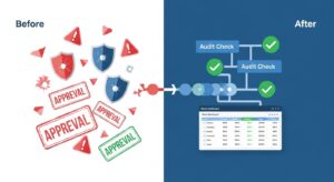 また、内部監査や外部監査の場面でも、例外運用は大きな障害となります。監査では、定められた規則(ポリシー)通りに業務が遂行されているかどうかが厳しくチェックされます。もし、正式な承認プロセスや記録なしに例外が多発していれば、「統制が効いていない」と判断され、是正措置を求められることになります。