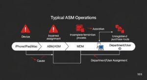 Apple Business Manager (ABM) や Apple School Manager (ASM) を導入し、iPhoneやiPad、MacといったAppleデバイスの管理を始めたものの、「こんなはずではなかった…」と想定外のトラブルに頭を抱えるIT管理者は少なくありません。