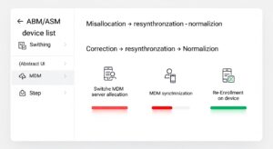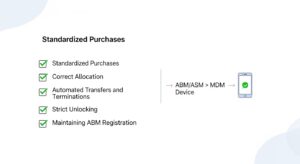 1分でわかるこの記事の要約 ABM/ASM運用で頻発する「端末割当ミス」「部署異動・退職対応」「購入経路混在」の3大トラブルを解説する。 これらのトラブルはMDM連携による自動化や運用フローの改善によって解決可能であり、 […]