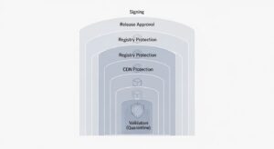 まず基本となるのが、コード署名の徹底です。デジタル署名技術を用いて、ソフトウェアの発行元が誰であるか(真正性)を証明し、配布中に改ざんされていないか(完全性)を検証可能にします。コード署名に用いる秘密鍵の管理は極めて重要であり、ハードウェアセキュリティモジュール(HSM)などを利用して厳格に保護する必要があります。