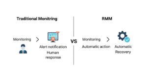 まず、RMMの基本を理解することから始めましょう。RMMは、多くのIT運用担当者が慣れ親しんでいる「監視ツール」とは一線を画すソリューションです。その違いを正しく理解することが、運用自動化への第一歩となります。