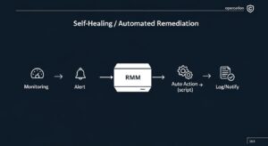 一方、RMMの真価は「検知」した後の「アクション」を自動化できる点にあります。例えば、「特定のサービスの停止を検知したら、自動的にサービスを再起動する」といった設定が可能です。これは、単なる監視から一歩進んだ「管理」、さらにはシステム自身が問題を解決する「自律運用」へのシフトを意味します。