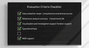 もし社内に高度な分析を行える人材が不足している場合は、ベンダーが監視・分析・対応までを代行してくれるMDR(Managed Detection and Response)サービスを利用するのも有効な選択肢です。導入後のサポート体制や、最新の脅威インテリジェンスを提供してくれるかも確認すべき項目です。