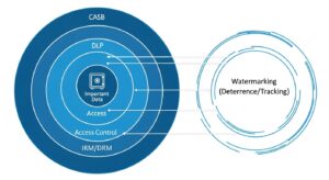 DLP(Data Loss Prevention)はデータの「出口」を、CASB(Cloud Access Security Broker)はクラウド利用の「統制」を担います。ウォーターマーキングは、これらの対策の隙間となりがちな、正規ユーザーによるデータの「利用場面」におけるセキュリティを担保する重要なピースとして機能します。