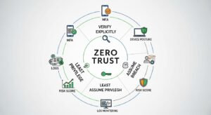 従来の境界型防御の限界が明らかになる中で、次世代のセキュリティモデルとして急速に普及しているのが「ゼロトラスト」です。その名の通り、「何も信頼しない(Trust Nothing, Verify Everything)」を基本原則とし、セキュリティ設計の考え方を根本から変えるアプローチです。