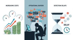 SSEが生成するログは宝の山ですが、すべてをSIEMに取り込む戦略は多くの場合、得策ではありません。その理由は大きく分けて3つあります。これらの課題を理解することが、効果的なログ連携ポリシーを策定する第一歩となります。