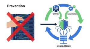 変更プロセスは、開発者がプルリクエストを作成するのと同様に進められます。インフラの変更コードがレビュー・承認され、メインブランチにマージされると、Argo CDやFluxといったGitOpsツールが自動的に本番環境へ変更を適用します。このワークフローにより、誰が・いつ・何を・なぜ変更したのかがすべてGitのコミットログとして記録され、監査証跡が明確になります。手動変更の余地がなくなり、ガバナンスとセキュリティが大幅に向上します。
