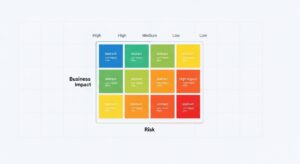 「業務影響」と「リスク」の2軸を組み合わせた評価マトリクスを作成します。これは、アラートの優先度を視覚的に理解し、判断基準を組織内で共有するための強力なツールです。
